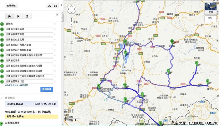这是我第三次去云南。此次云南省内行程共3000多公里,吃、住、行、游人均消费4300元。以下是此次行程路线图(我输入H“红河县”,不知为什么非要把H点定在红河州,我只好手工画了一条线,补上红河这一段。)具体的行程我就不写了,推荐一款手机导航软件叫高德,正版免费,“志玲与你一路同行哦~~~”