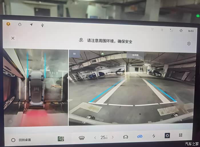 二、360全景影像功能作为新手司机,倒车以及经过窄路或者会车时就会很担心刮蹭。这个时候就可以把方向盘上的自定义按键设置成360全景影像,一键打开,非常方便。