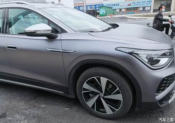 ID.6X给我的第一印象是很大,全车的线条是比较柔和的,车头车尾给人的印象是比较圆润可爱的类型。侧面线条流畅,显得车身非常运动有型。我的ID.6X车身是灰色的,我贴了一个灰色的膜,看起来比较低调。前后贯穿的可发光的大众logo我是比较喜欢的,晚上开出去的话很靓。晚上回家我家两个孩子隔老远就能认出我的车了。
