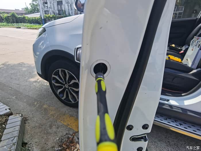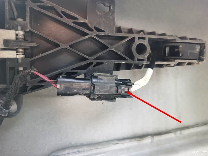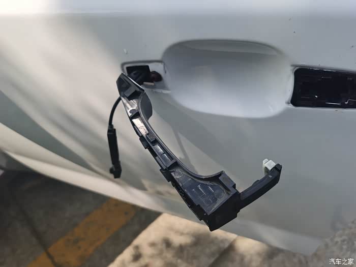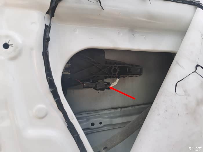 然后把车门内侧拉手位置的感应器插线拔掉。