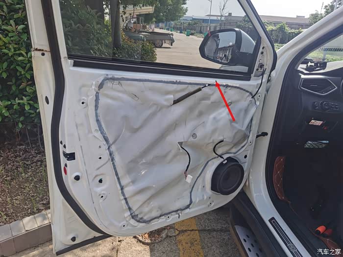 第一步是把车门内饰板拆掉,首先把这个三角块撬下来