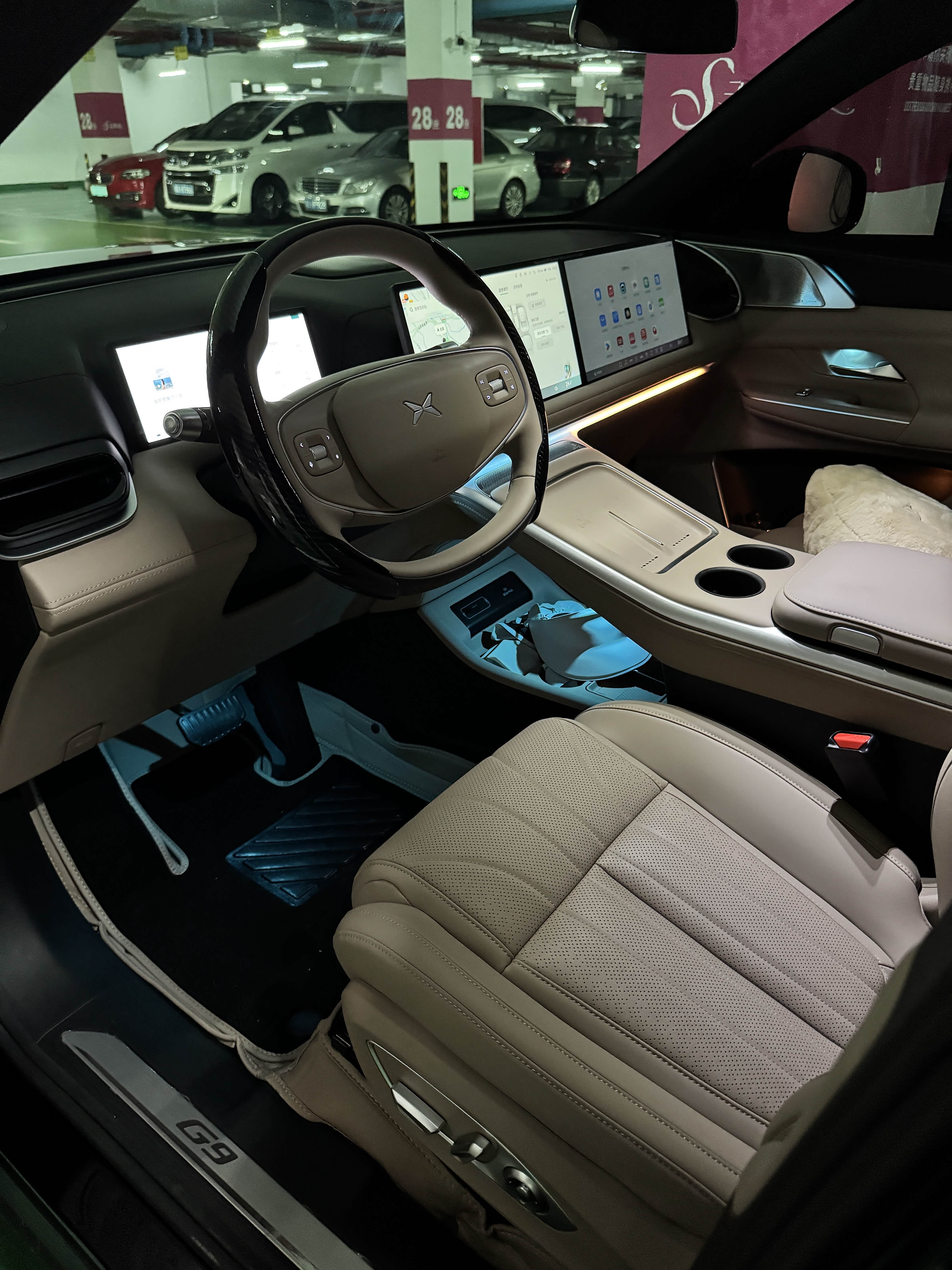 我家离公司距离较远,旧车皮质硬,遇到堵车根本坐不住,广东夏天高温晒过的座位还会超级烫屁股,暴晒下开车屁股和后背都会出汗。自从换G9之后,我都是下电梯前用app提前打开车内空调和座椅通风,在高温下提前散热,一坐进主驾,Nappa真皮座椅的包裹感和柔软度,瞬间治愈了我上班一天后的劳累。这一刻,我知道,我的“舒坦主义”找到了归宿。插播一句,选车时我们还考虑过奔驰c260和e300,但30来万的大玩具还要加小一万才能选前排空调座椅,甚至还不能和可加热的前排座椅同时选配!这不是非逼我加钱在夏天和冬天里二选一,纯大冤种么?但小鹏全车支持座椅通风和加热,可以提供夏季清凉干爽的后背,冬天温热如春的后背,性价比简直不要太高!