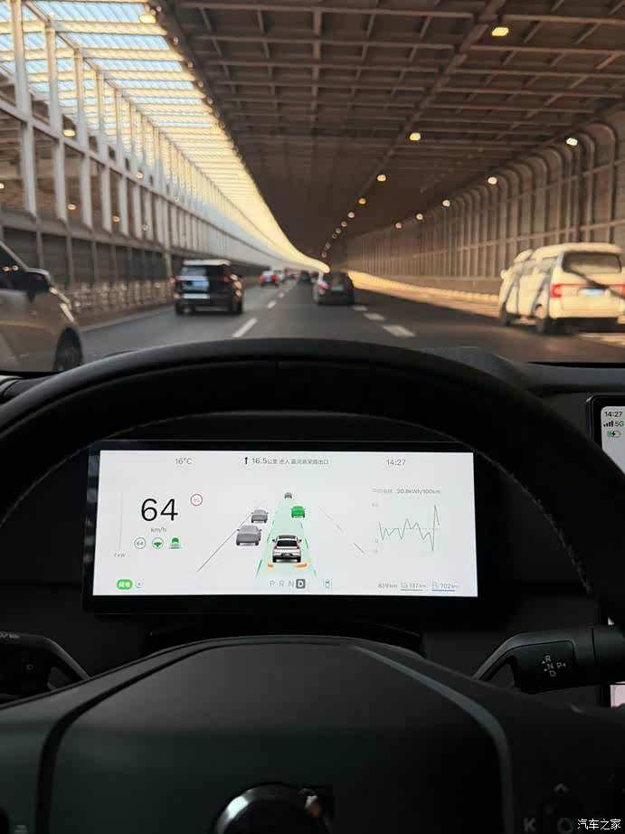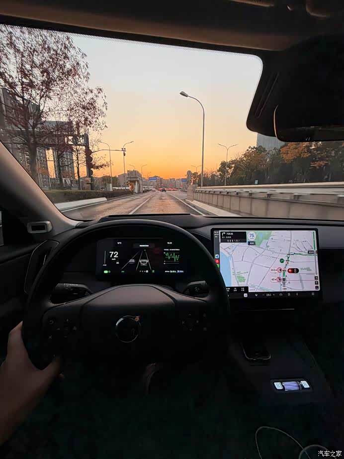 最让我意外的是它上下匝道的能力。 以前的 LCC(车道保持)遇到匝道就傻了,得人工接管。现在的 NPA,导航设置好目的地后,它会提前1.5公里向右变道。如果右侧车道车多,它会寻找空档,打灯,加速,插进去。动作干净利落,有点老司机的味道。进匝道那个大弯的时候,它会自动降速到40-50km/h,说实话,第一次用的时候我手心全是汗,随时准备接管。但跑了几次之后,我现在上高架只要路况允许,我是很乐意打开NPA的,但还是要随时注意路况,这毕竟是法规要求,必须注意。