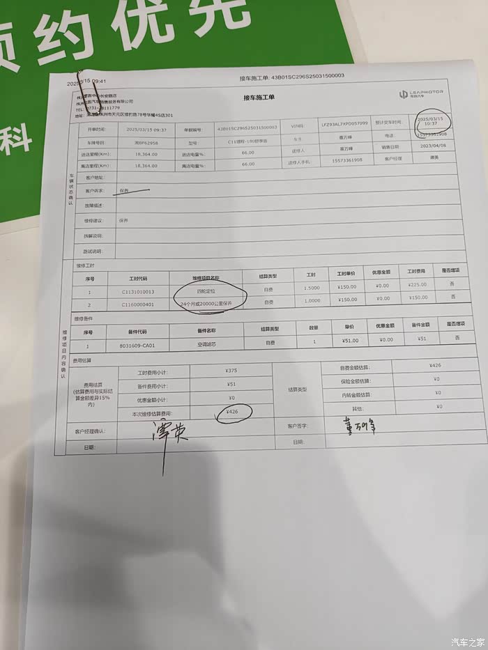 时光飞逝,我的零跑 C11 已陪伴我整整两年。这不,我早早为它预约了第二年的维保服务。到了售后服务中心,接待员小姐姐特别热情,马上给我安排了预约优先的牌子,还迅速完成了登记。在这里提醒各位小伙伴,如今零跑销量一路飙升,售后愈发忙碌,提前预约能享受优先服务,可千万别忘!