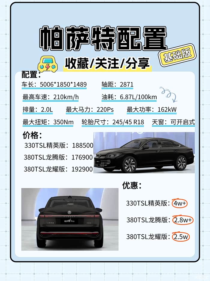 1. 330TSL 精英版:188500,优惠 4w+!