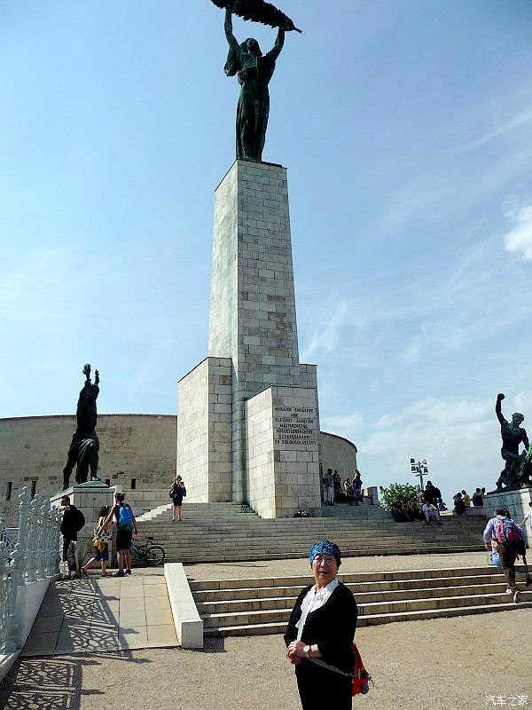 布达山上城堡要塞下后方的解放纪念碑。上端是一位双手高举棕榈叶女性的铜像。