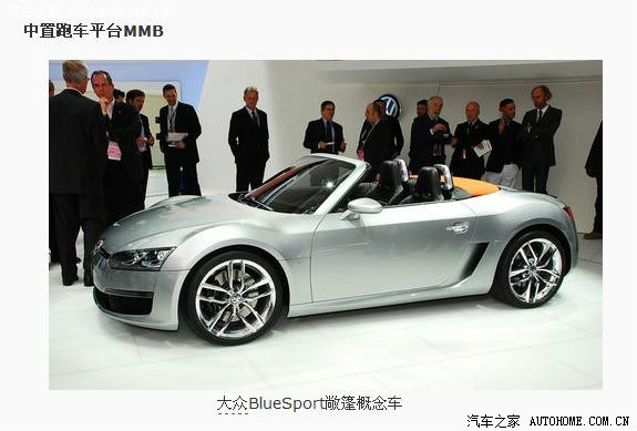 MMB(Modulare Mittel Baukasten)则是大众集团最新的专门针对跑车所开发的中置发动机平台。该平台拥有可根据车辆的需求来自由调整轮距的优势,所以大众才能够在该平台 上推出多个品牌的具有不同特点的跑车。另外,在这个平台上的车型均为中置后驱/四驱的布局模式,特别是发动机的横向的布局,这样以尽可能的来共享前驱车型 的动力和变速箱。