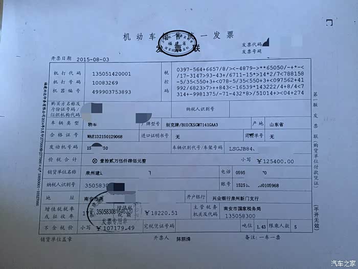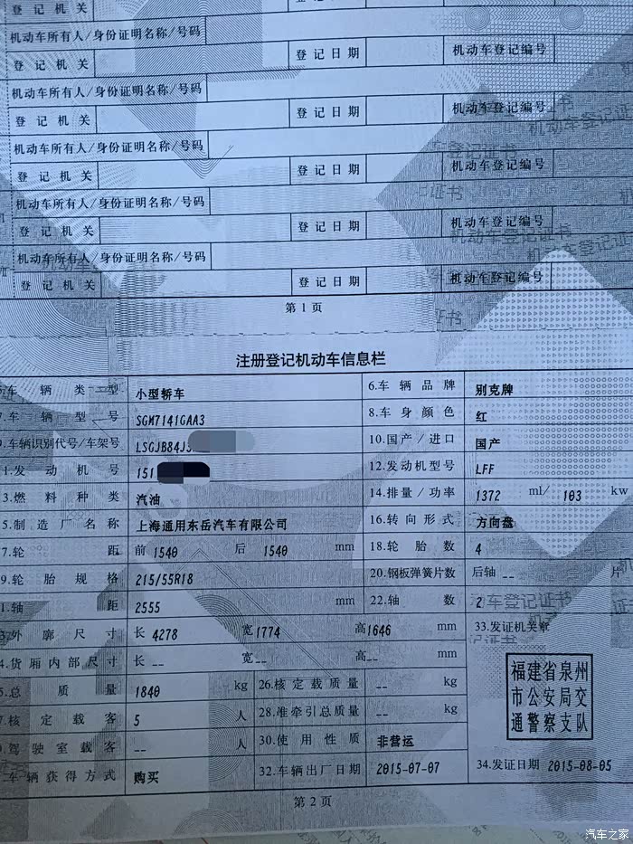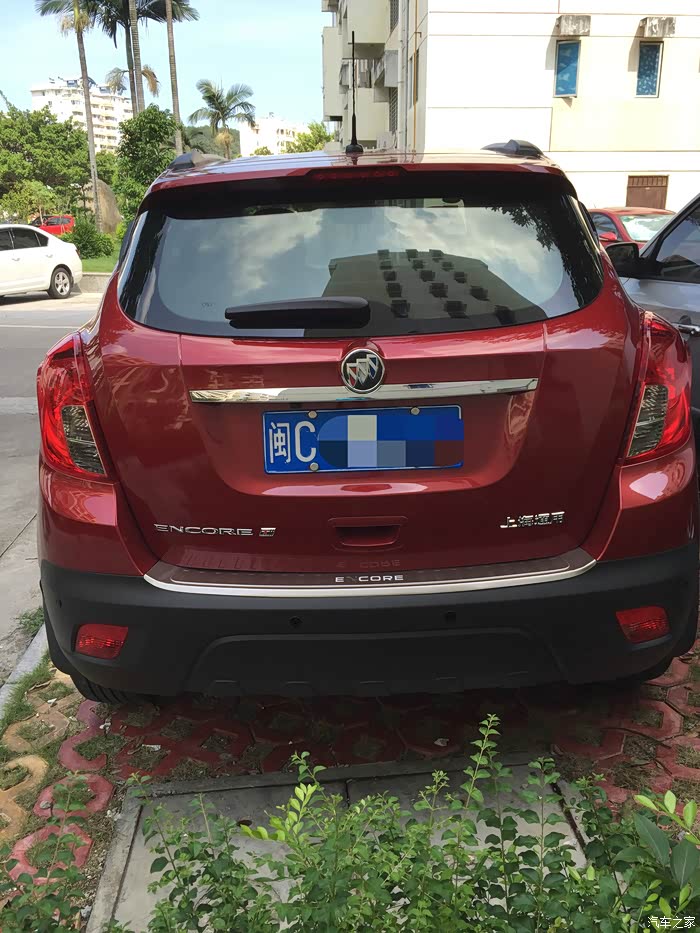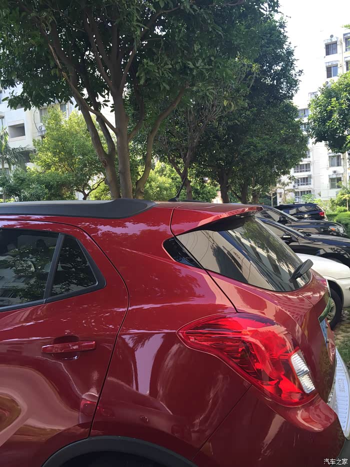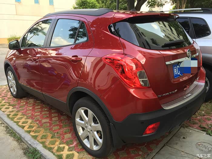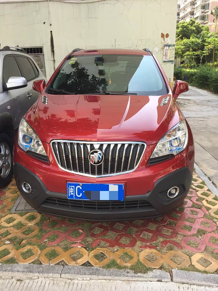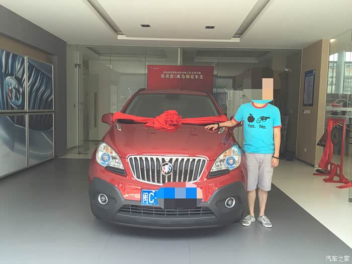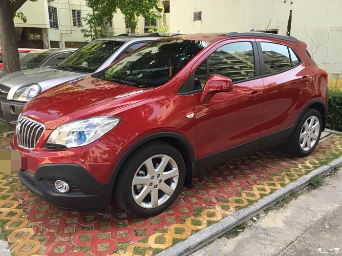 接着就是与小昂结缘的过程了。进4S店看车,老婆和老丈人看到昂克拉第一眼,就觉得外观大气漂亮,内饰也比“同胞兄弟”创酷精致得多,而且全系天窗等配置也比创酷高,加之官方全系降2万,性价比一下高了许多。算一算和同样配置的创酷也就多个几千块钱,于是当场就拍板买小昂自动精英款。当时我和老婆的心理价位是裸车价12.5W左右,即便我们表示可以当场下订,但销售说只能在官降后12.99W的基础上再优惠两千,然后再送导航和一个2000元的大礼包(大致就是挡泥板、倒车雷达之类的),请示了主管也说不能再优惠了,谈得心塞,没办法,谈价就是一个博弈的过程,心急不得,先走人吧。过了几天,老婆的同事说认识另一家别克4S店的人,给帮忙打了电话,那边销售经理立马来电,热情邀请,说价格都好谈。路程是远了点,于是抱着试试的态度驱车前往。当时到店已经是晚上7点了,但是销售经理和人员还是在耐心等待,进店后也没有急着谈车的事,而是热情接待。销售经理和销售人员都很有耐心,对于我们提出的疑问,无论是关于车子还是购买流程上的,都很认真地解答。经过一阵磨嘴皮子,裸车价12.54W,再送路畅导航、倒车雷达、贴膜、挡泥板、底盘装甲,行车记录仪,我和老婆觉得这个价格也算是比较实在了,当场下订。接下来就是“慢慢等车路”了。用这个“慢”,是因为从我订车到提车,历时一个多月。当时店里的车都是白色的小昂,但我和老婆都看中红色,销售解释说红色的车子厂家生产得比较少,订了车需要等厂家发货,大概40天左右能提车。和老婆商量了一下,反正也不急着用车,就等等呗。车子到了之后,看生产日期是7月6日的,看来还是专门给我生产了一台红昂啊,嘿嘿。感谢各位车友听我啰嗦了这么多,不敢再耽误各位的时间了,上图!(图片是从提车至今陆续拍摄的)