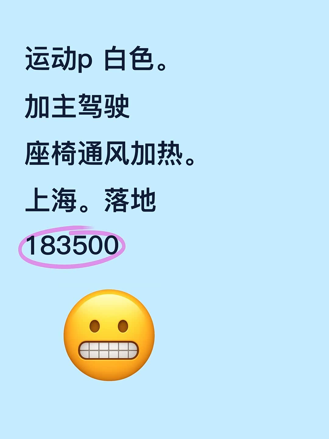 运动p 白色。加主驾驶座椅通风加热。上海。落地183500