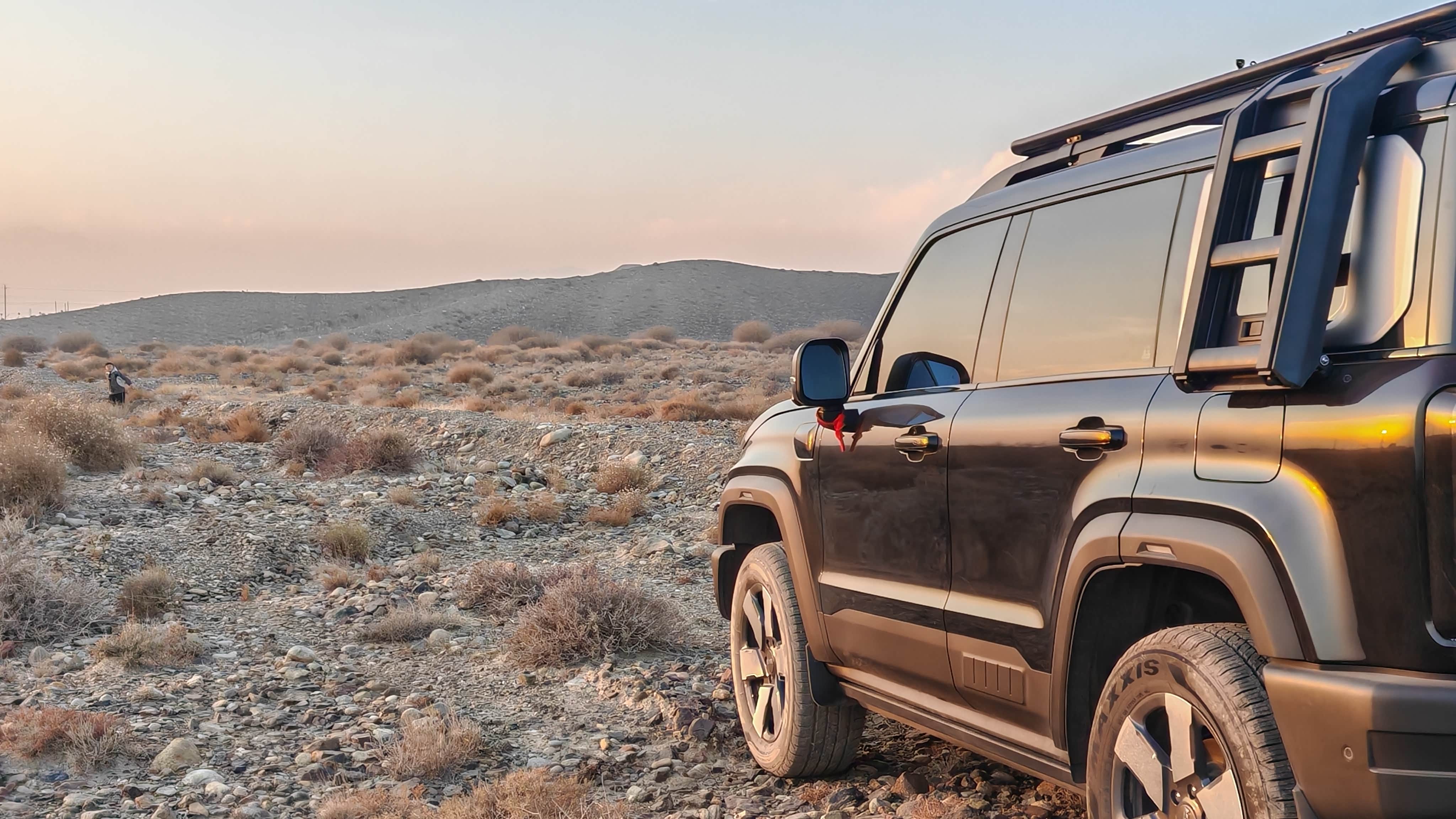 一个月了,方向盘有点抖,昨天到4s店弄了一下,还没有试,今天高速试一下。每天第一件事就是找充电桩。每天30左右电费,油耗,昨天拜城到阿克苏,半箱油,用的燃油优先。今天回去再试一下。越野动力,强,不担心,上周带儿子简单的上了一次戈壁滩,回来的时候被土包搞了个四轮悬空,玩一小时掏土三小时。也是因为动力太强土太松,交叉两轮悬空,一用劲车就原地打转横在了土堆上。。。。。出来后对面没路,直接爬坡过沟,直接上。天太黑了,没拍照。(素车,轮胎减震全是原厂)