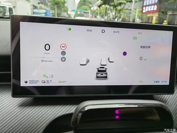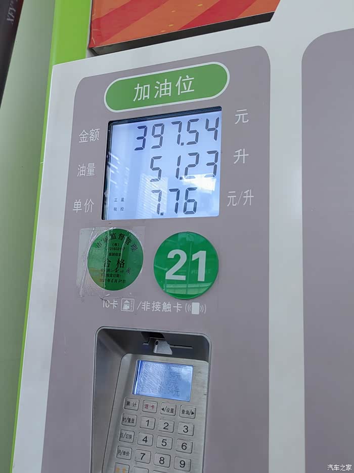 提车后就先用电开回家了,经济模式和标准模式都动力很足,转向也没有虚位,底盘质感厚重,过小坑坑洼洼几乎没有振动,低速过减速带韧性挺好,速度快了就会有一点点震动。空调制冷很快,打开座椅通风、配上座椅按摩,开车途中舒适很多。第二天早上去开车,解锁车辆就先换气。拉开车门后,语音提醒“车内即将起雾,已打开自动除味功能”,这个还是挺好的。在公司附近的油站加满油,跳枪后就没有再加了,太满也不好。