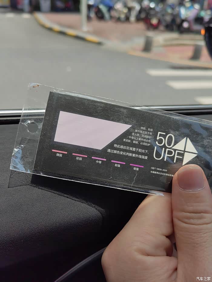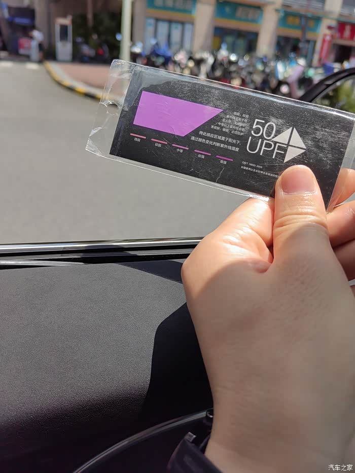 车前挡和侧面玻璃本就有身隔紫外线的功能,这个测试卡是开窗状态