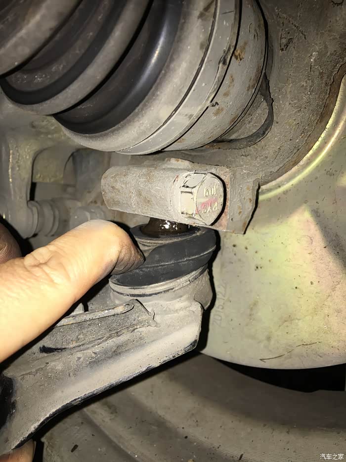 上次发现前支臂的外球头胶套内有污水,擦在手指上搓了下,应该不是油,很瑟。