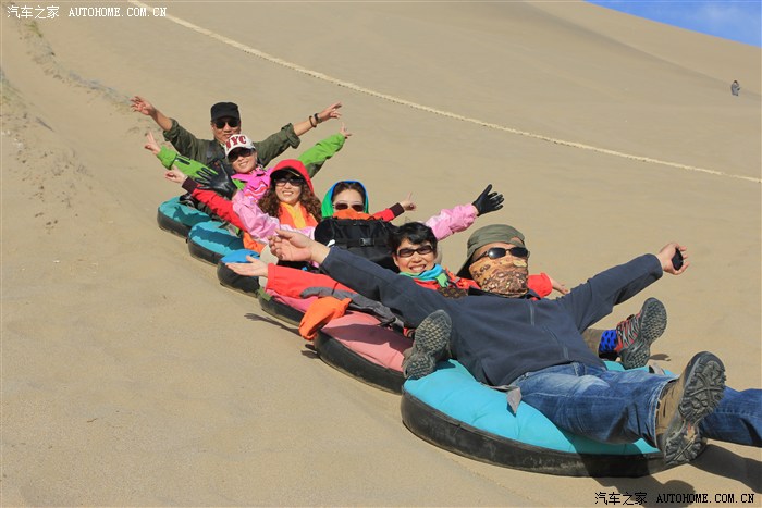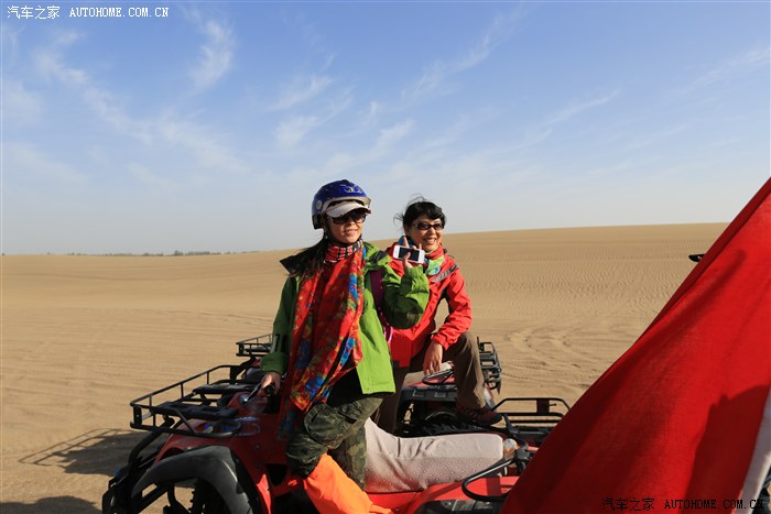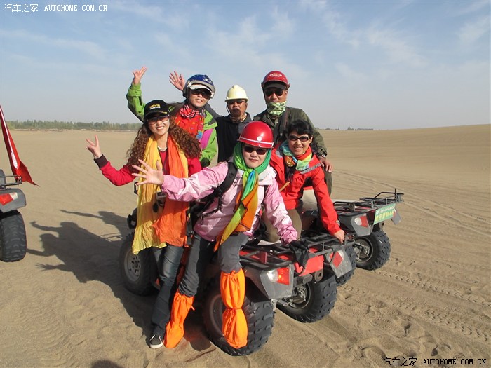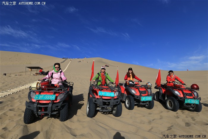 在鸣沙山大家着实狠狠的HIHG了一把,骑沙漠摩托,120元/人,6人中只有我LP和她姐姐不会开车,但也很勇敢的第一次尝试着开摩托,虽然开的距离不是很远,但也做了一次女汉子,在摩托手的骑行下,从角度有80度的沙坡上俯冲下坡,6人还从沙山顶滑沙下来,太刺激了
