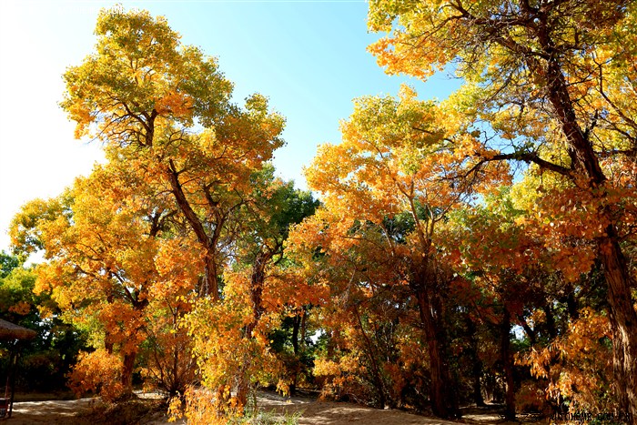 我们在网上了解过,在距敦煌火车站3、4公里处有胡杨林,在网上的图片看上去也很漂亮,也听说在敦煌有世界上第二大胡杨林,以为就是此处,快到敦煌时还真看到有一处胡杨林景区,经讨价还价后,6人收费160元(原价是40元/人),开进去才知道被忽悠了,里面只有不到10个游人,还碰到湖南老乡有3人在打牌,胡杨林的面积很小,就当再次休息了,后来在去雅丹地貌的路上看到了世界第二大胡杨林,后面在说