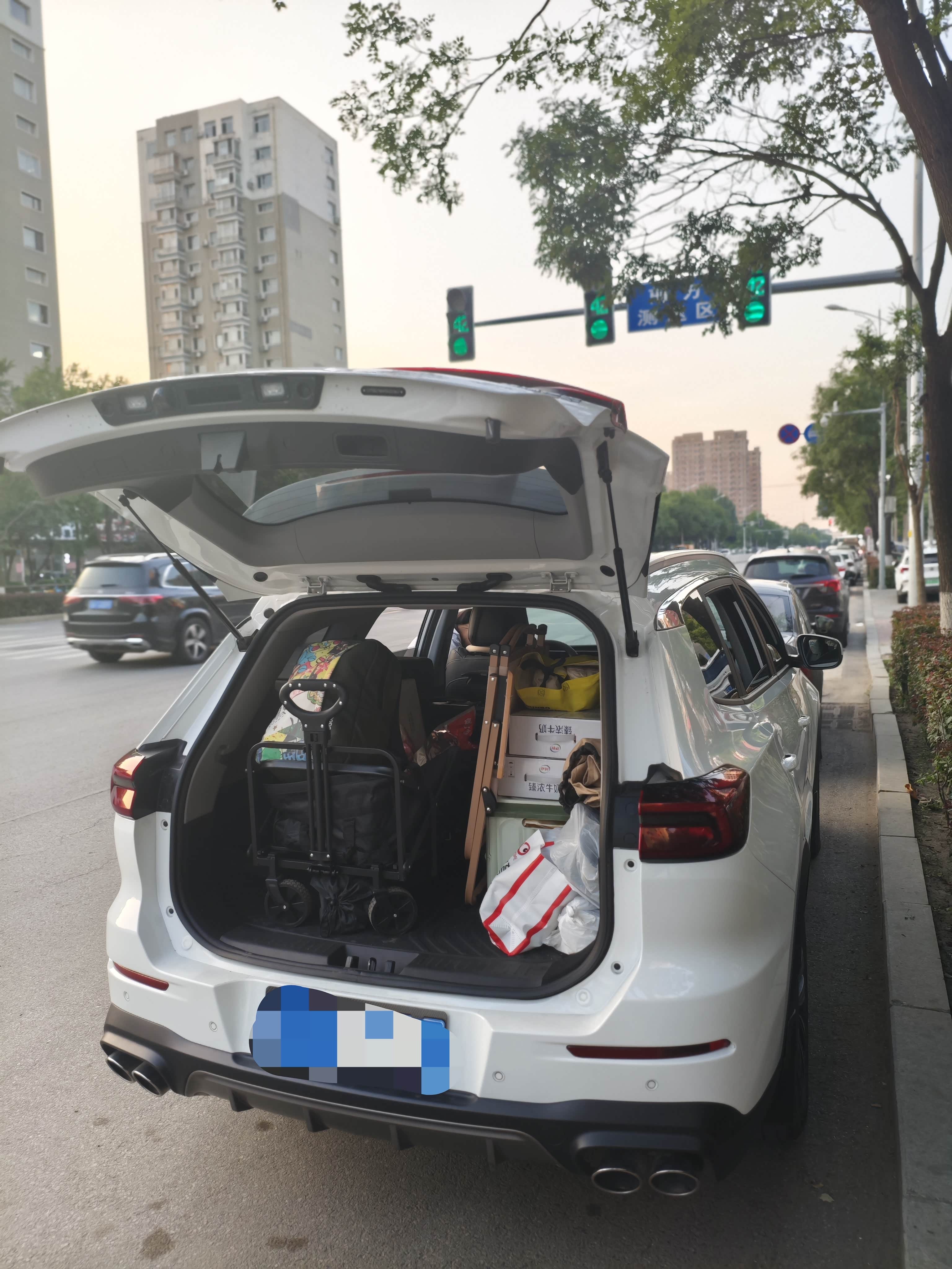 最让我满意的是后备箱和后排座椅放倒后的空间。平时上下班,后备箱放个电脑包、健身装备完全没问题;周末去超市采购,买再多东西也能装得下。有一次家里装修,需要拉一些板材和工具,我把后排座椅全部放倒,瞬间得到了一个超大的平面空间,长度将近两米,宽度也足够,把板材平铺进去完全没问题,当时就觉得,这简直就是个“移动小货车”。