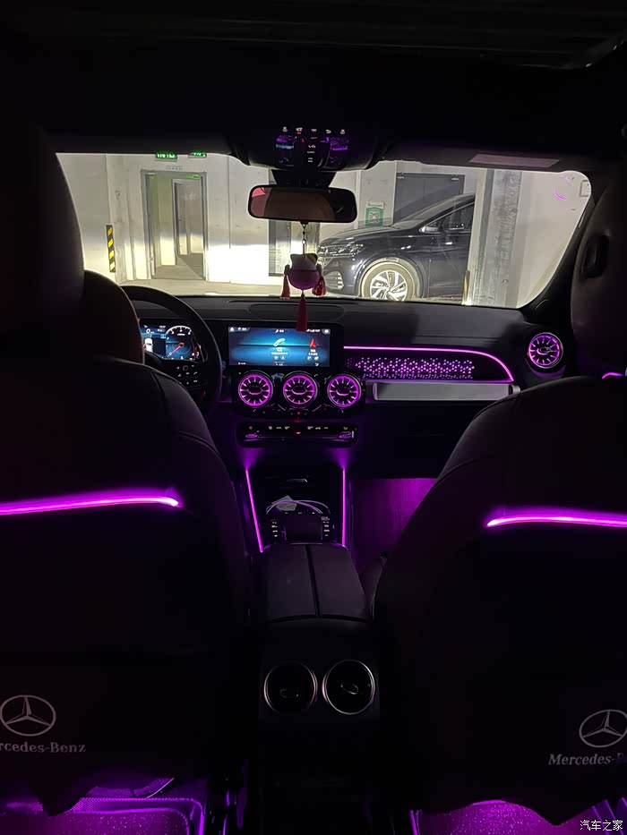 原厂的氛围灯着实有点少,再加上c系那骚里骚气的网红氛围灯。又忍不住了,加装吧。四门喇叭罩,副驾星光面板,后靠背的氛围灯搞起!