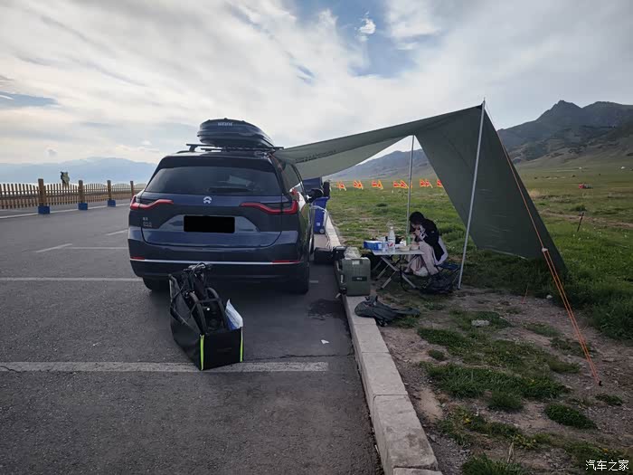 广袤的草原上,绿草如茵,繁花似锦,远处的雪山在阳光的照耀下闪耀着银光。我们将车停在草原边,打开后备箱,取出帐篷,准备在这片美丽的草原上过夜。ES8的对外放电功能此时发挥了巨大的作用,我们煮上了香喷喷的火锅,享受了一顿独特的草原晚餐。夜晚,躺在帐篷里,听着草原上的风声和虫鸣声,望着满天繁星,心中充满了宁静与满足。