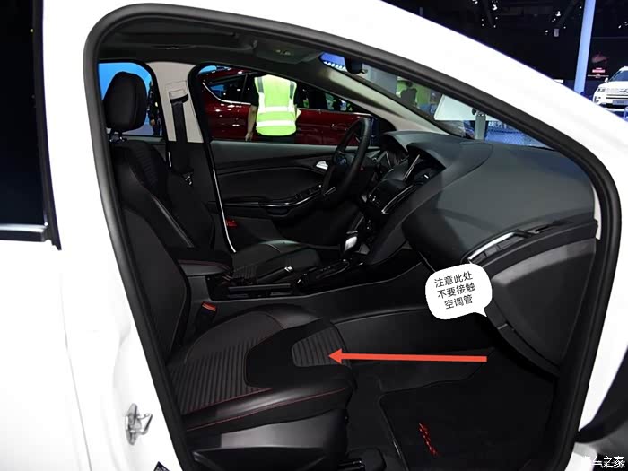 沿红线位置脚底走线,注意线走到副驾驶后不要接触到空调管,然后往上用扎带固定到元宝梁上。最好从后往前,容易很多