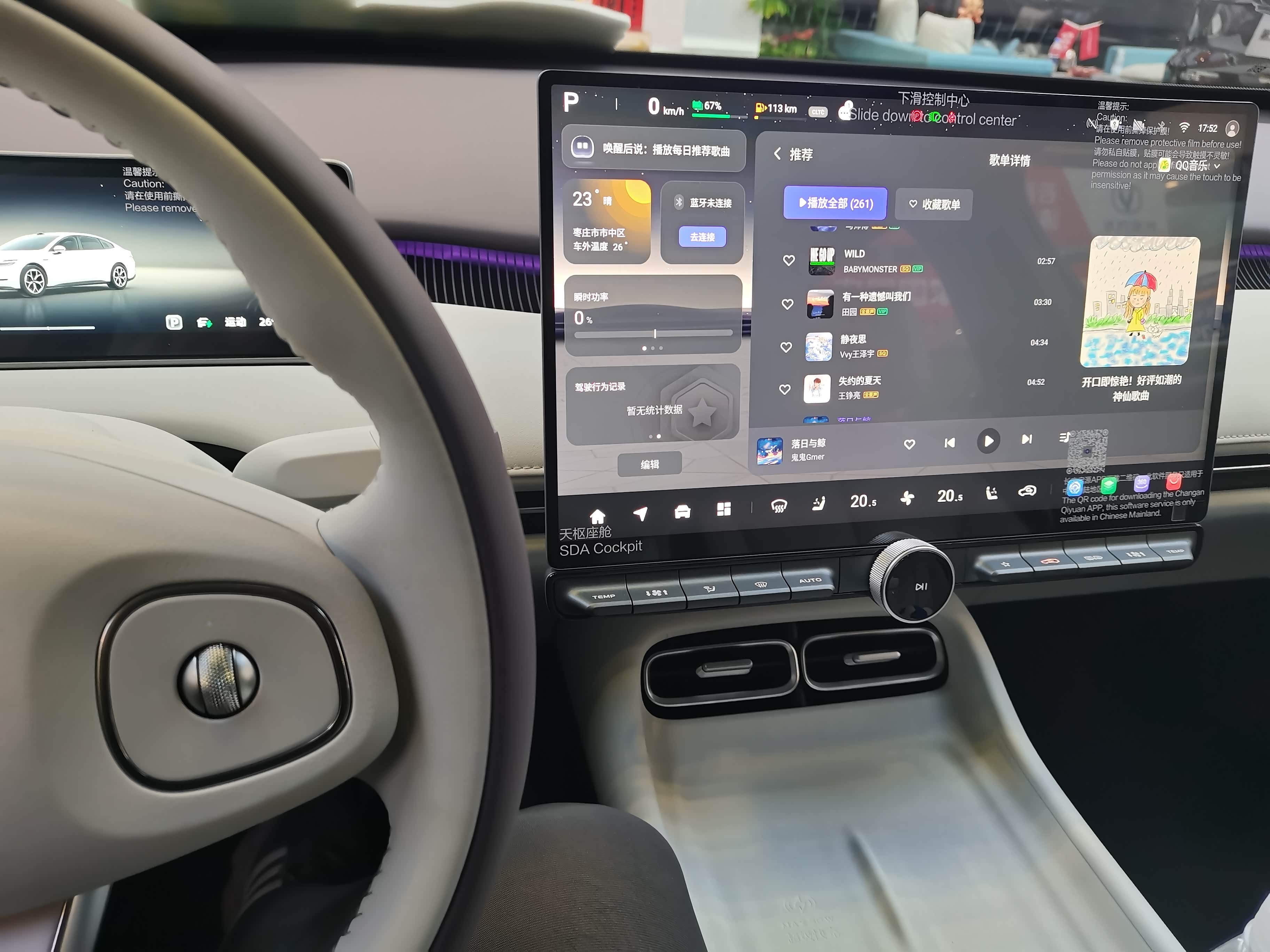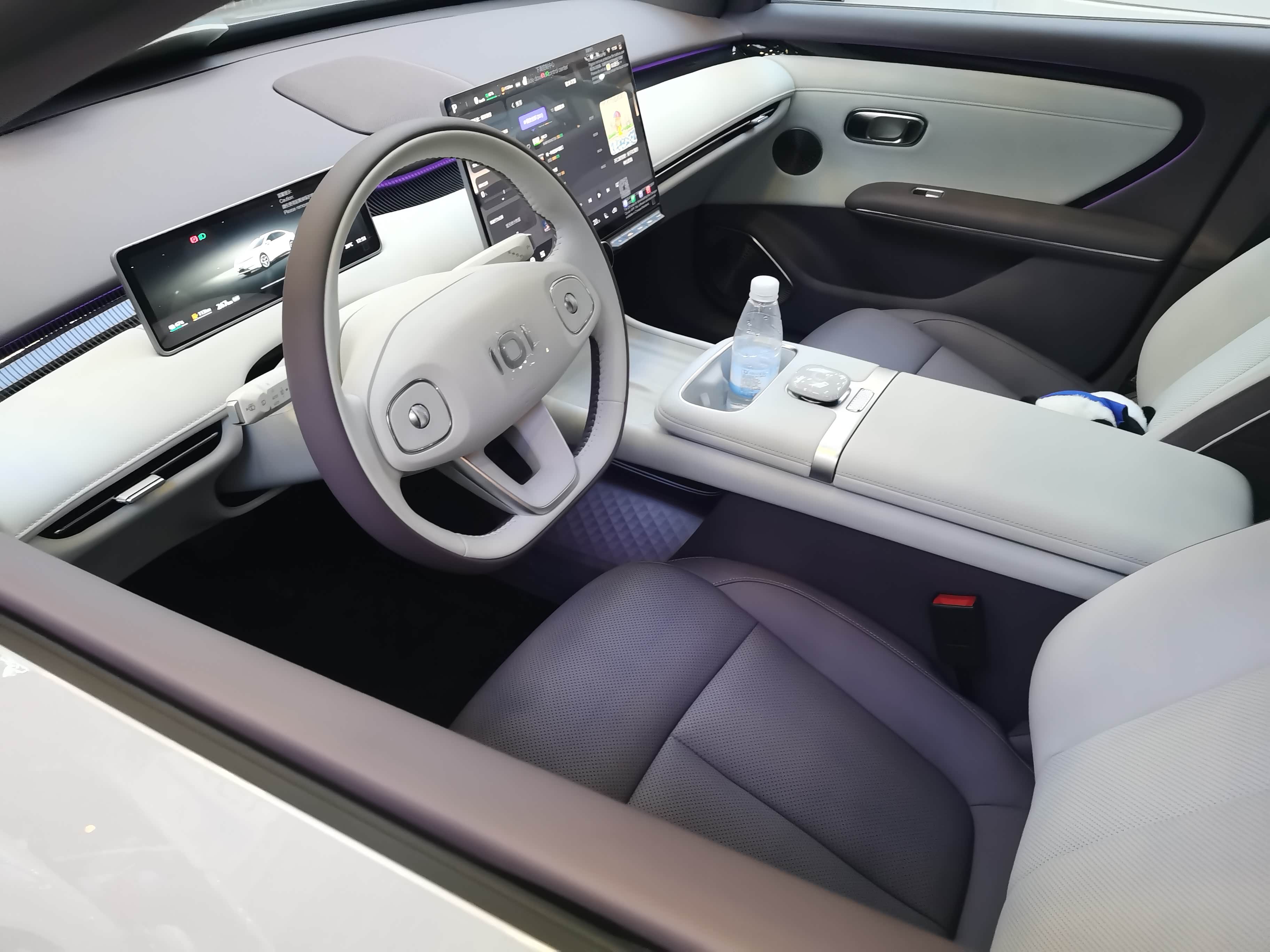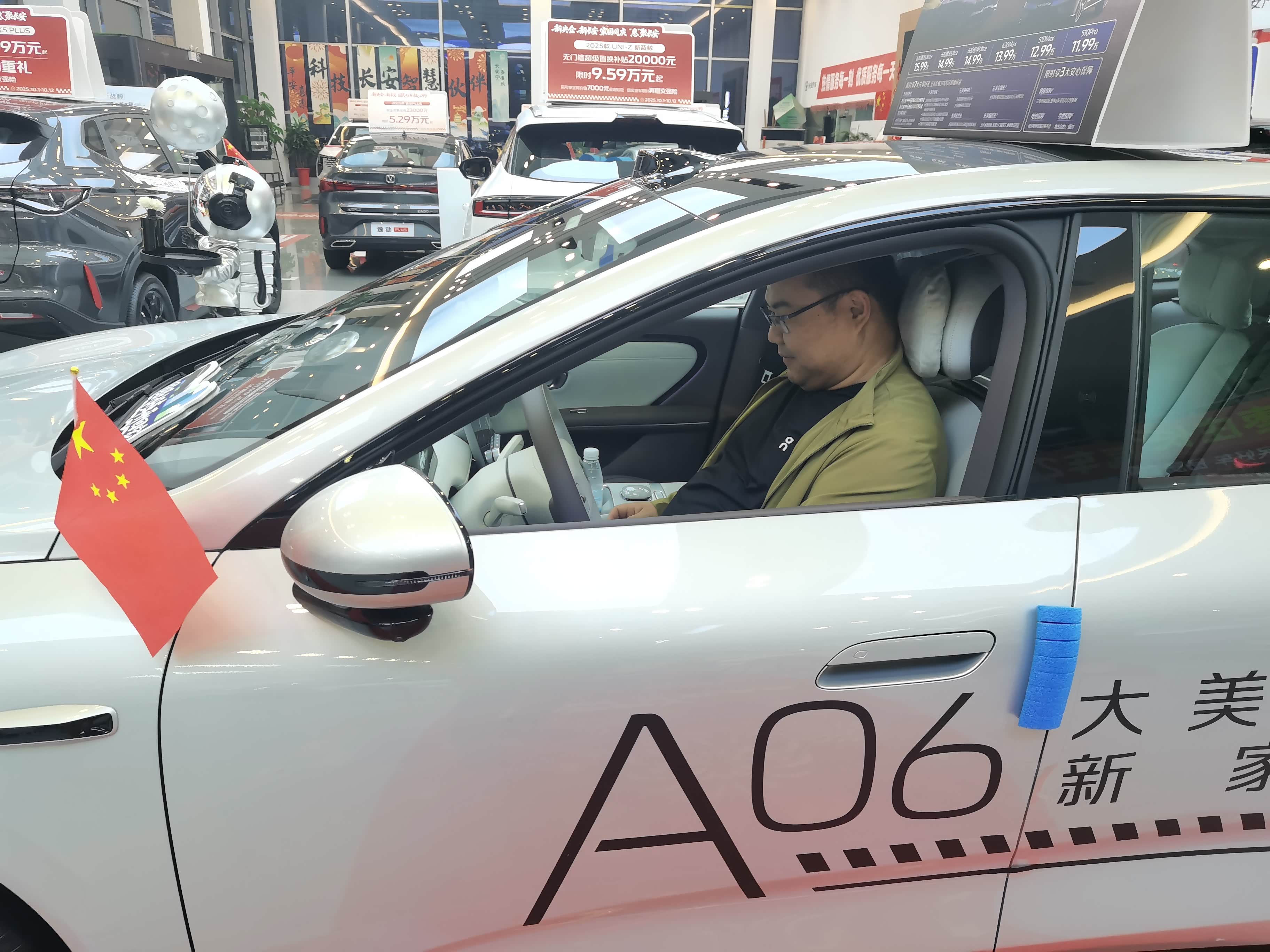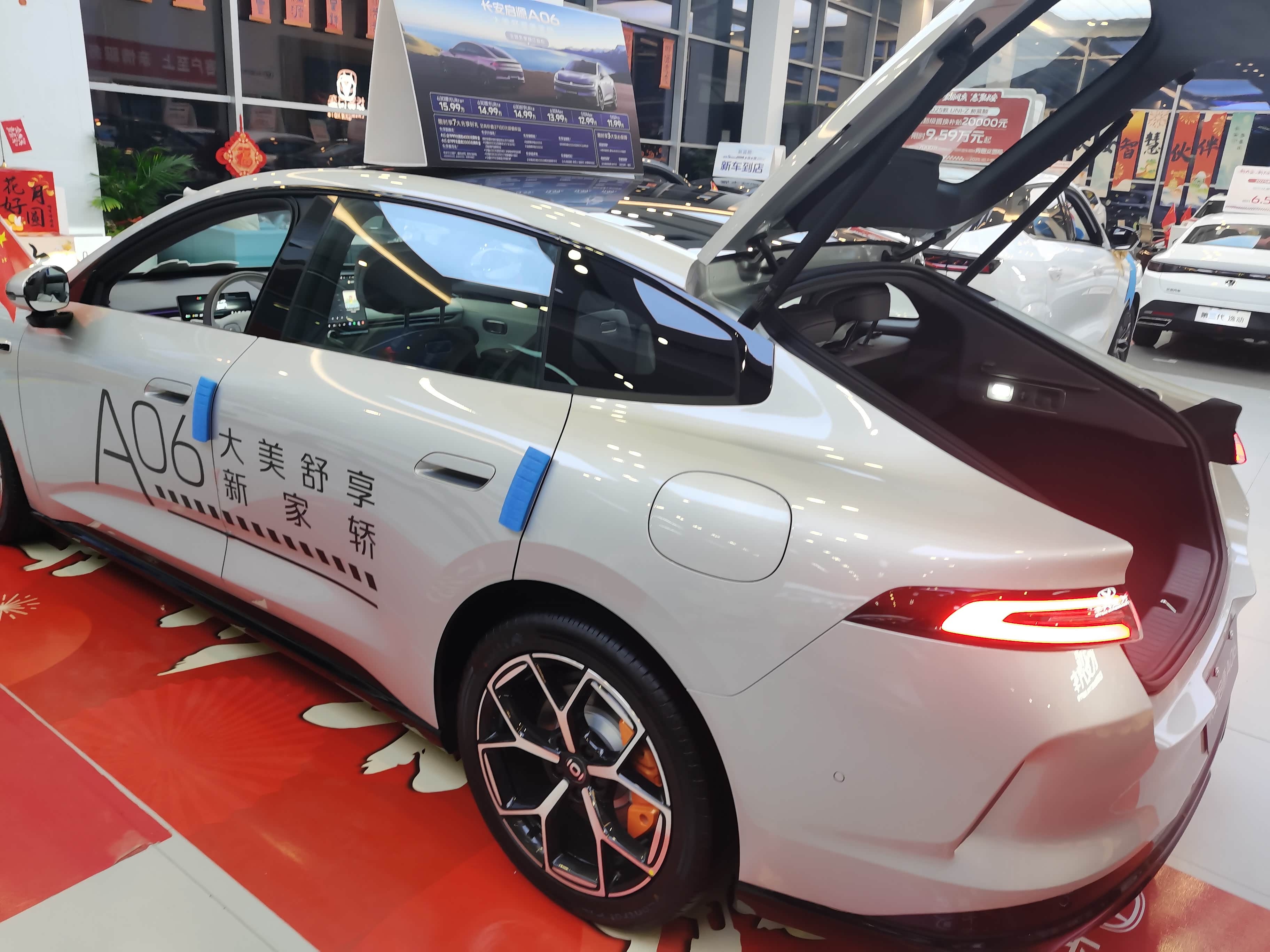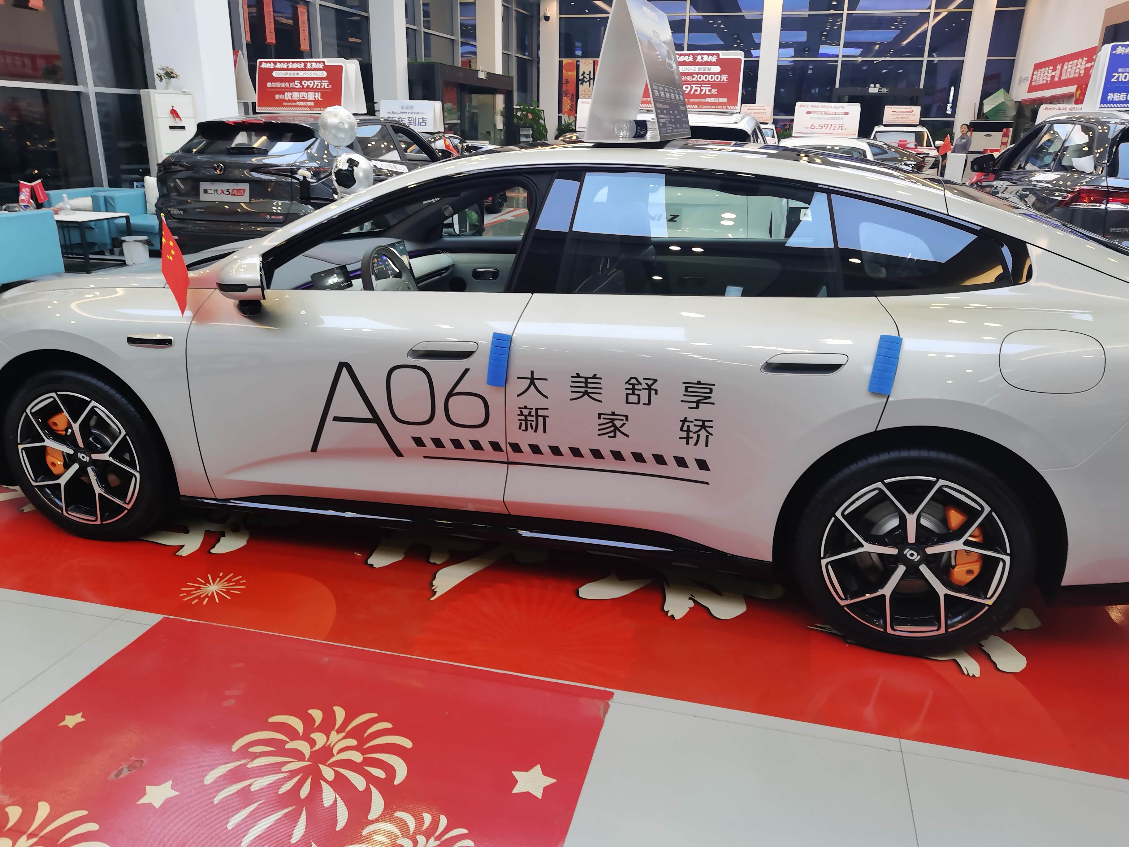 听说店里A06展车到店,正好下班路过启源4S店,于是到店里看看这辆很早就听说过的车型。进入展车大厅,一辆崭新的A06摆在最中间的位置,从外观上看个人感觉这车属于偏运动型的时尚车型。前脸最醒目的是其贯穿式的大灯以及车顶的激光雷达。车门把手已经把隐藏式的电动门把手换成半隐藏式的机械门把手。棕色的卡钳特别醒目,有力的印证了我对这辆车定位的猜想。后备箱的打卡只需要轻拍车标就可以,后车灯也是贯穿式的。车内饰也是简洁大方,中规中矩。