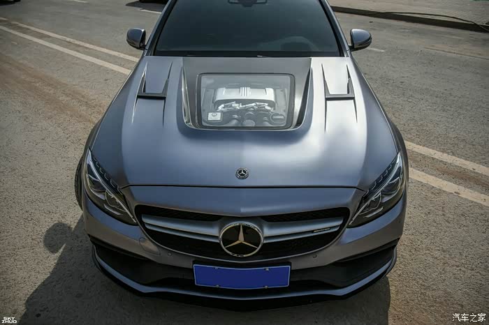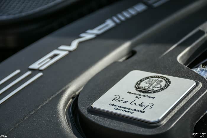 不过这款透明机盖真的不错,虽然透明的面积没有露出两边的AMG标志,但是两颗大涡轮还有AMG大心脏独有的“一人一机”签名都能看到,不必多露,懂得人自然懂,露多了反而有点过于夸张,毕竟车主买这台车还有一个重要的目的-扮猪吃老虎