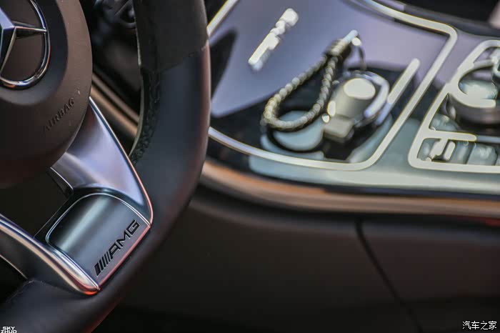 带有12点钟标记的AMG三幅多功能方向盘,左右被Alcantara翻毛皮材质包裹着,握感很棒