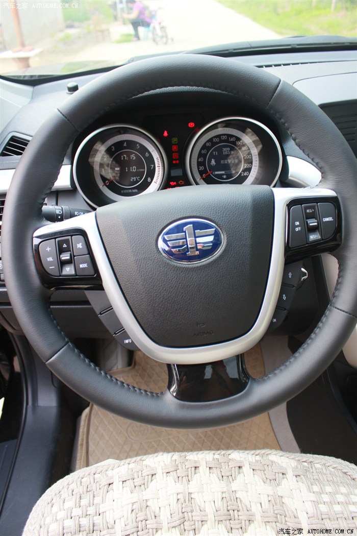 配置丰富实用,价格合理接缝有点大尾部布局合理有层次感,双排气很喜欢侧面线条流畅,外观大气漂亮祖师爷俺家的古董解放,真的还能开哦30多年了内饰功能性强,操作方便,做工一般中国一汽,顶!接缝有点大认证车钥匙4S送的凉垫低配的扶手箱,有高的吗