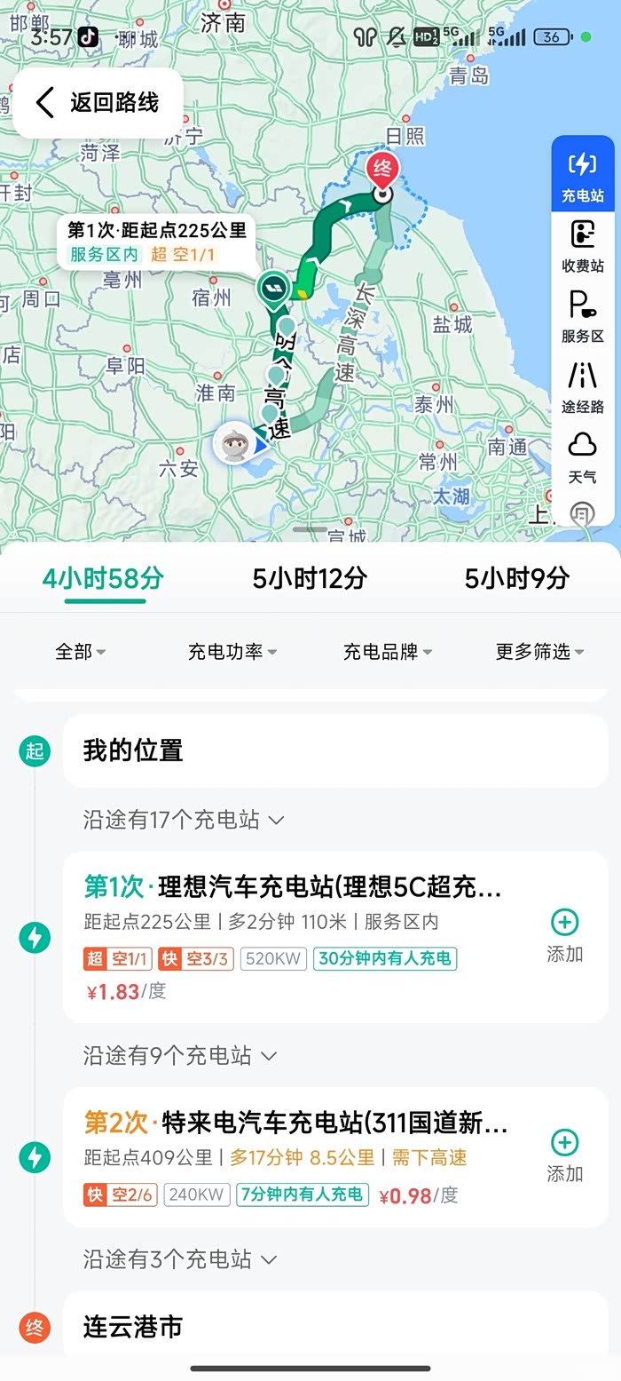 开着极狐汽车从合肥出发,驱车五小时,周二的高速绿的发黑,懂得都懂!几乎没有车,车速最高150,中间200多公里的时候充了一次电,并没有排队,直接充电,吃了碗泡面!