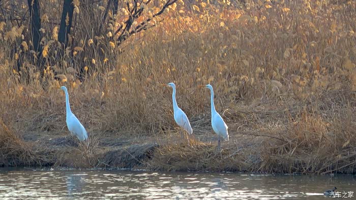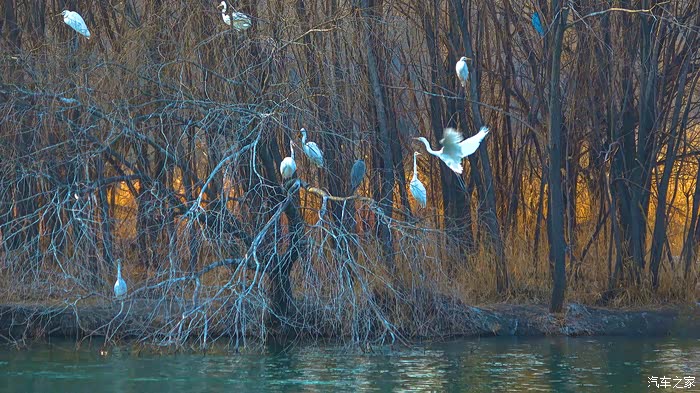 当看到这么多种类的水禽时,内心有些不敢相信所看到的,那是一种惊喜和欣喜,这里白鹭和苍鹭最多,有的在空中优雅飞舞,有的和其他鸟儿争抢食物,有的在水中啄食,吃饱了的,就在树冠上、在草丛中打盹休息;水面上各种中、小型水禽,斑嘴鸭,绿头鸭,白骨顶,或是在嬉戏追逐,或在水面游曳找吃的;岸上人们驻足观看欣赏,更有不少的摄友在拍摄。
