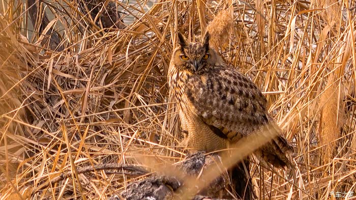 沿着水边的芦苇溜达,如果不是那双明亮的大眼睛忽闪了一下,差点就把这只雕鸮错过去了,这可是世界上最大的猫头鹰之一。