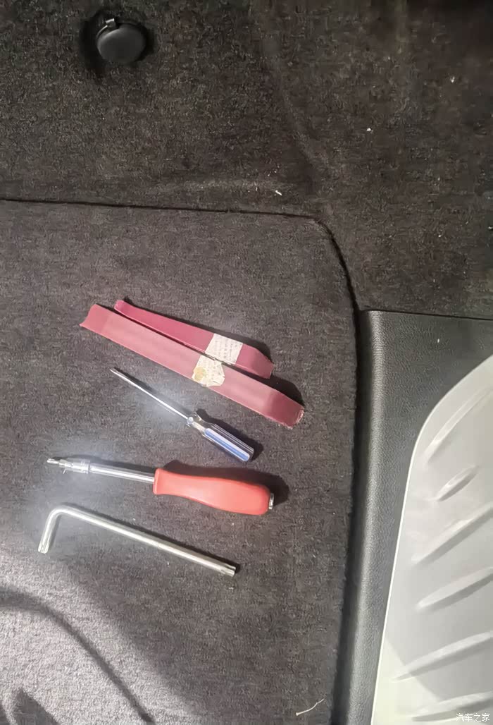 先拆下三个拉坏螺丝,座位放倒拉手螺丝