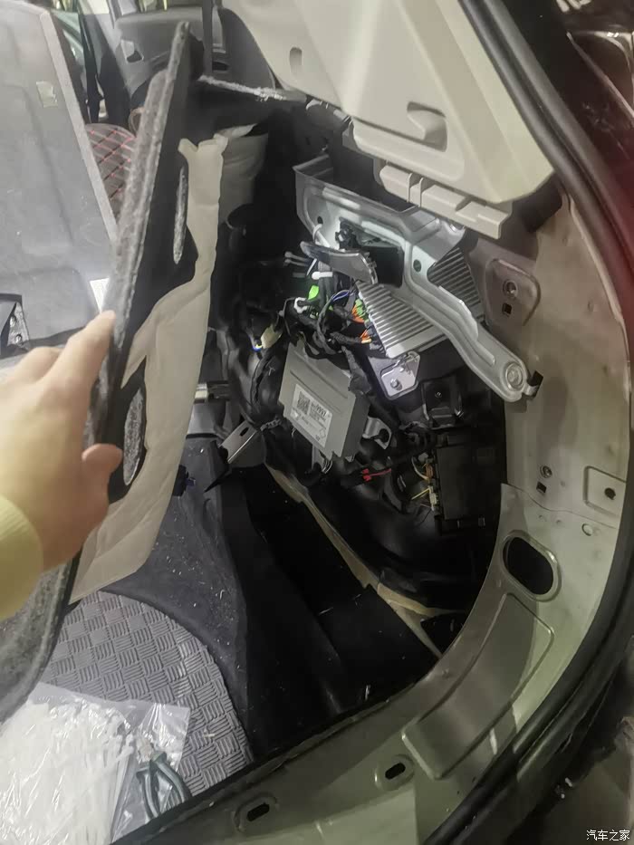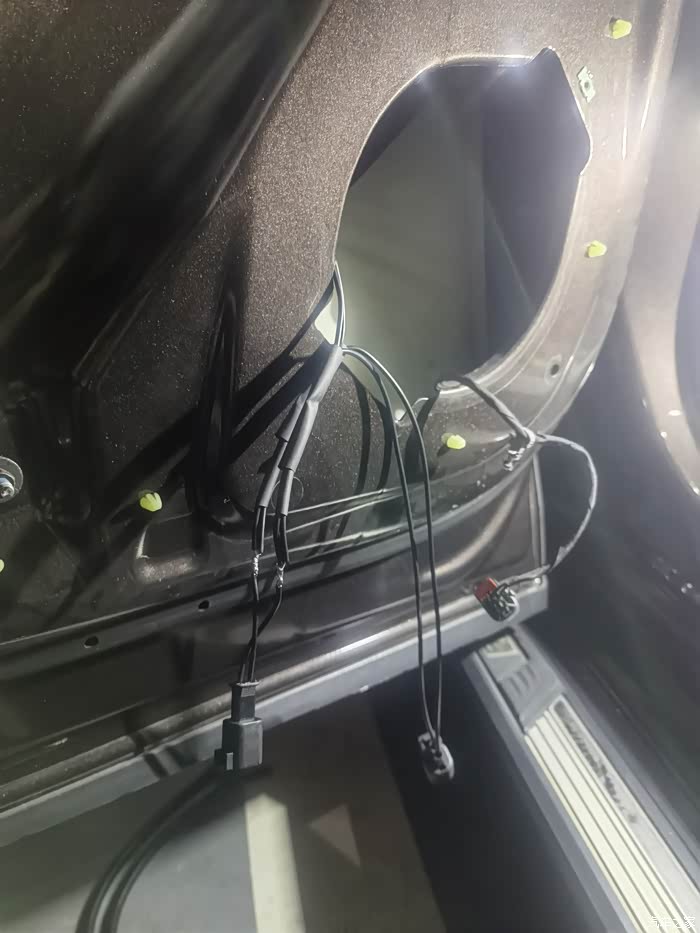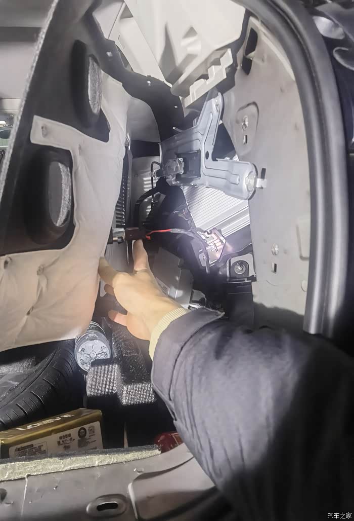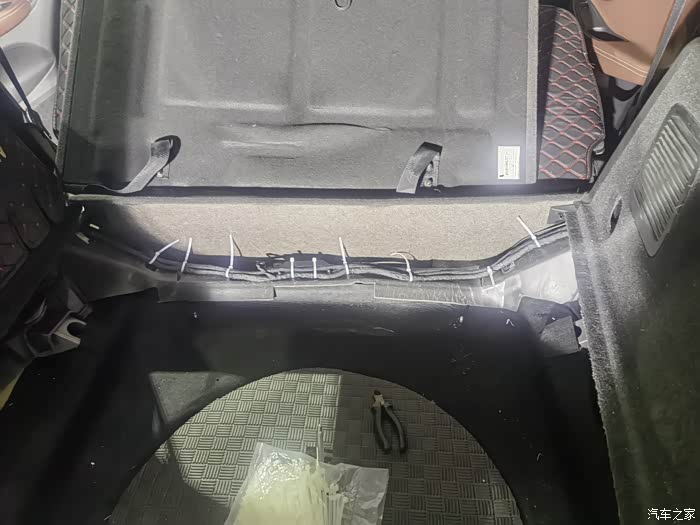 低音炮的线束,准备放线到后座底部