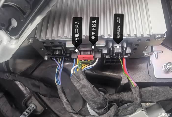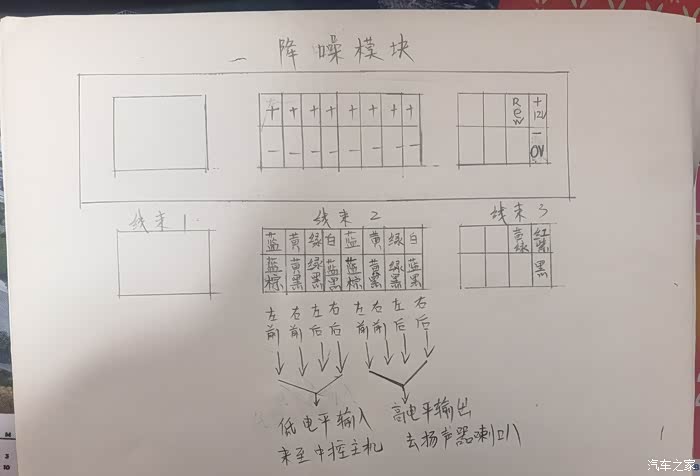 首先准备降噪模块并联音频线束;低音功放电源供电线束