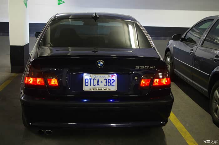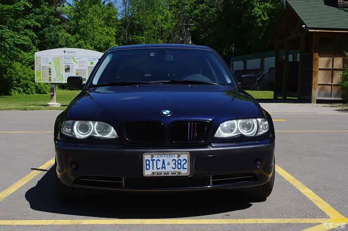 本人常住多伦多,在车行做贷款经理的职位。一年半以前因为工作之便收了一台2003 宝马330XI E46 顶级导航版德国原装。从上学的时候就对这一款3系宝马情有独钟,终于梦想成真碰到有顾客要置换新车。我是当仁不让收了这款我心目中的经典。 更让我兴奋的是这是一款四轮驱动导航版。要知道当年导航选装要一万二加元也就是六万元人民币。收回来以后小小的整修和改装了一下。加装了天使眼,中网, 变速箱杆, 和LED边灯和角灯。尾灯也贴了膜。在易趣上买了一个2014年的宝马北美地图DVD用的非常好。这车最好的就是驾驶感觉。直6(谢谢纠错)3.0的动力澎湃加速非常给力。 X DRIVE四轮驱动在冬天冰雪路面操纵稳定。 用了一年半,有些老化的零件已经更换。换了转向支臂,进气橡胶管,水泵,节温器,避震器。总的来说质量还是不错的十几年的车开起来杠杠的。 前段时间开了一下公司的2014款328 X DRIVE,感觉比这个车差远了,原本还想把这个车转让出去,这么一对比才知道这款E46的本色。不多废话了,大家来看图吧。照相技术不好,车没有清洗。