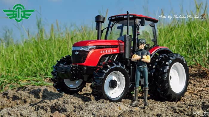 山人家里有一个整天展示在客厅里的1:18的大比例拖拉机模型,相信玩模型的都知道像这种大型拖拉机模型都很少采用1:18的比例生产的。所以这款模型体积比较大,从上图中的2.75寸的人偶可以看出模型的体积,有模友会问山人为啥会喜欢这款农机模型呢,因为这款模型的实车就是俺们五莲生产的。所以可以拥有一款自己家乡生产的真车的模型,山人还是充满自豪感的。尤其是亲戚朋友串门的时候,都会谈到这款模型。