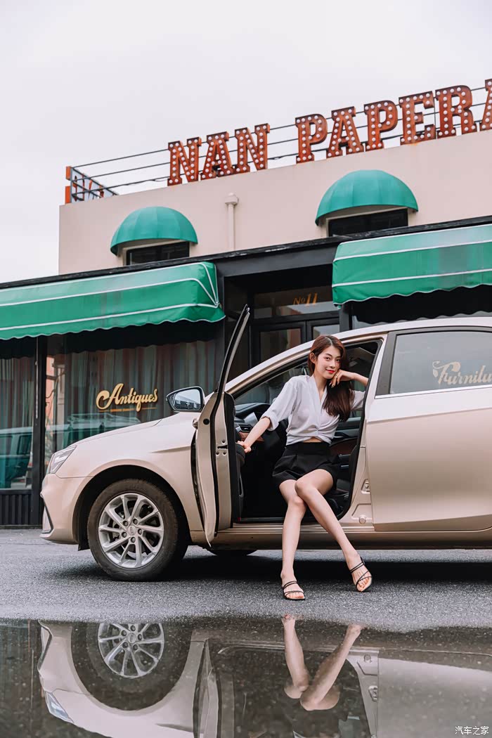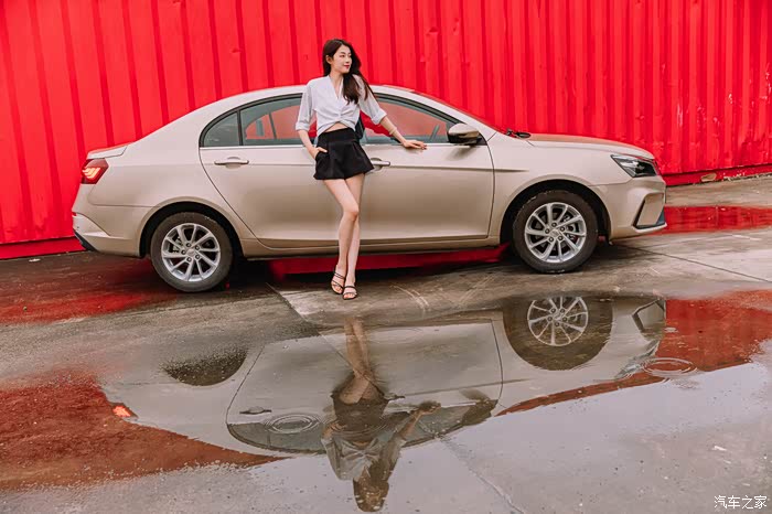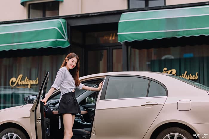 看到红色的集装箱和颇具小资情调的小店,Selina也是大秀身姿让我尽管“拍、拍、拍”,爱美是人的天性,而具有时尚的美感却更是能讨她们的欢心,毕竟车对于现代人而言,也是自己的一张名片,从侧面显示车主的品味,而帝豪除了在这些最容易被观察到的外形设计上有了明显的提升以外,细心的你也能看到它的车标也变成了当下流行的黑色,也说明整个品牌在设计方向上的改变,更愿意去迎合年轻消费者的口味。从Selina的表现来看,她还是买单的,因为无论是外观的配置还是设计她都很难去挑出有什么不满意的地方。