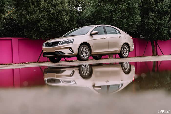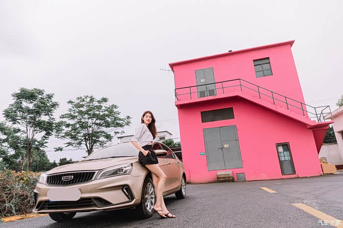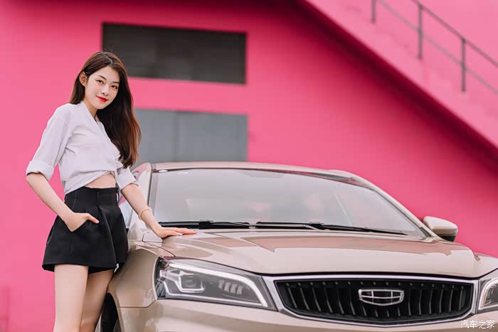 Selina同时看到我和帝豪,上来问的第一句就是“这就是今天要给我体验的帝豪吗?”,看来帝豪还是能引起她的兴趣,这其实还是挺让人欣慰的。毕竟,当下俨然是一个看“颜值”的时代,先不论好看与否,能吸引到人的注意其实就相当不易,帝豪在经历了多次改款和换代之后显然也摸索到了年轻人的“口味”,全新4.0直瀑式前格栅看着相当的气派,并且配合这个张扬的日间行车灯还是能让人在车流中一眼识别,琥珀金的颜色粗看之下其实没有那么的耀眼,但是配合这个粉红色墙体,却是和“低调奢华”不谋而合,高级感还是能跃然而上的。