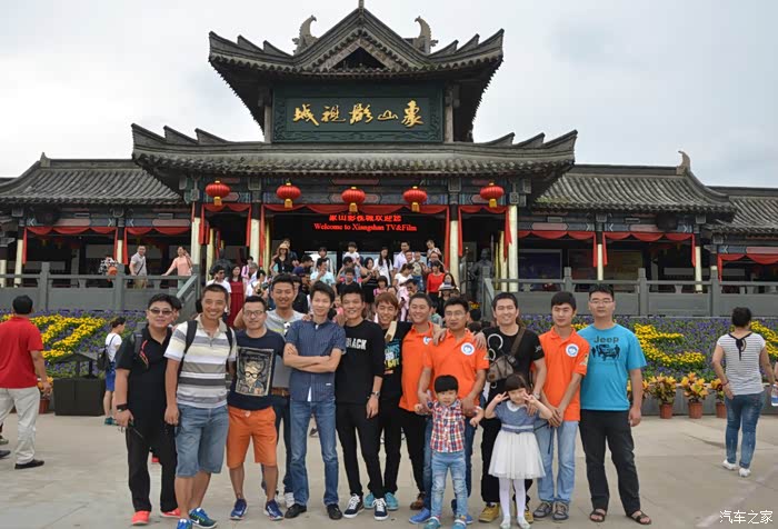 团队在影视城门口先来个合影