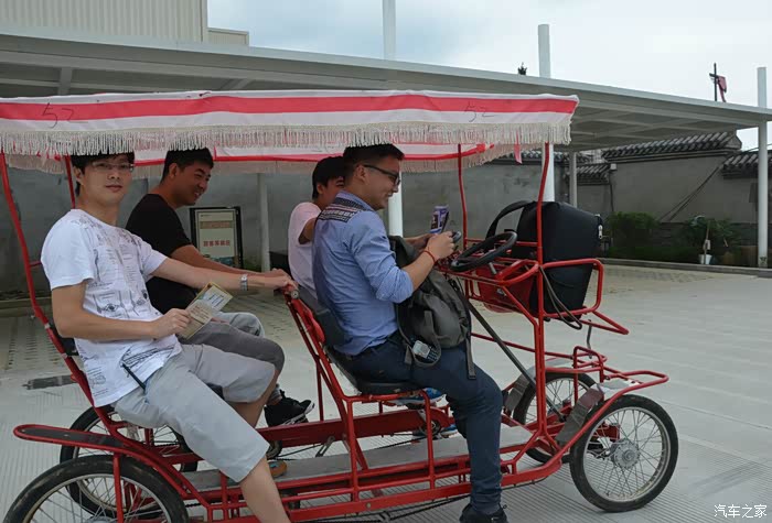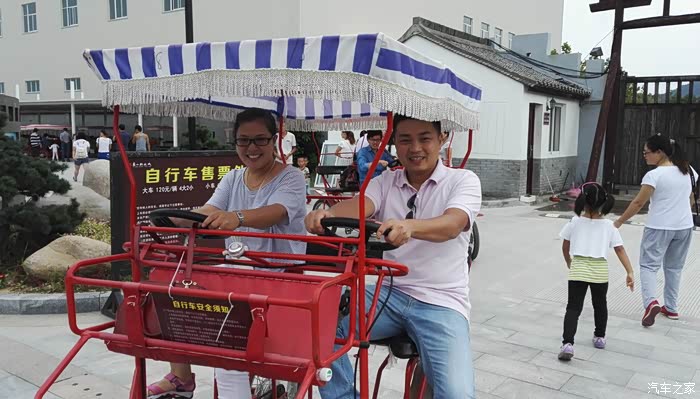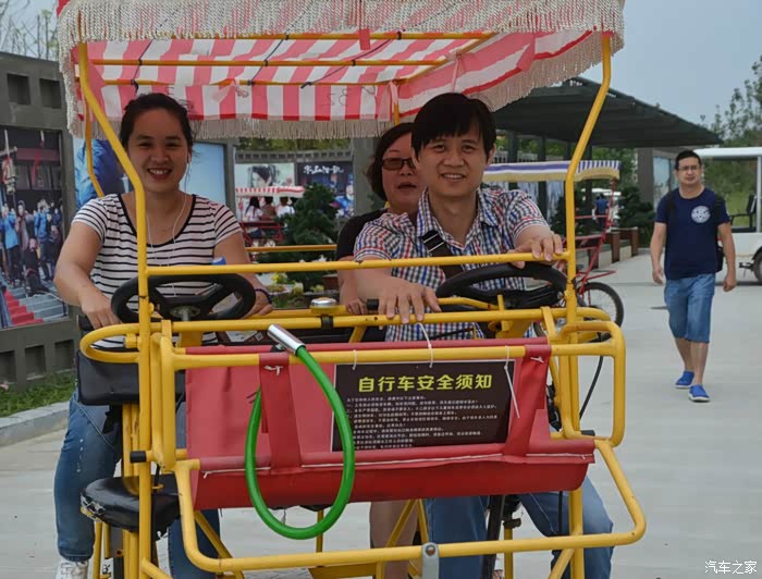 由于影视城比较巨大,还是租台脚踏车省力,看看晨曦一家已经开动