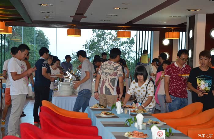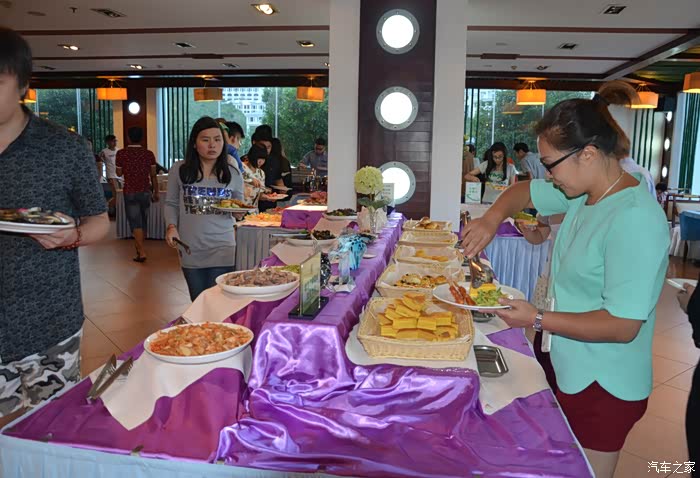 酒店大堂已经为车友会做好就餐准备