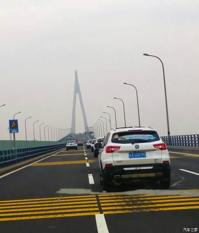 霸气的CS75车队整齐有序的经过杭州湾跨海大桥