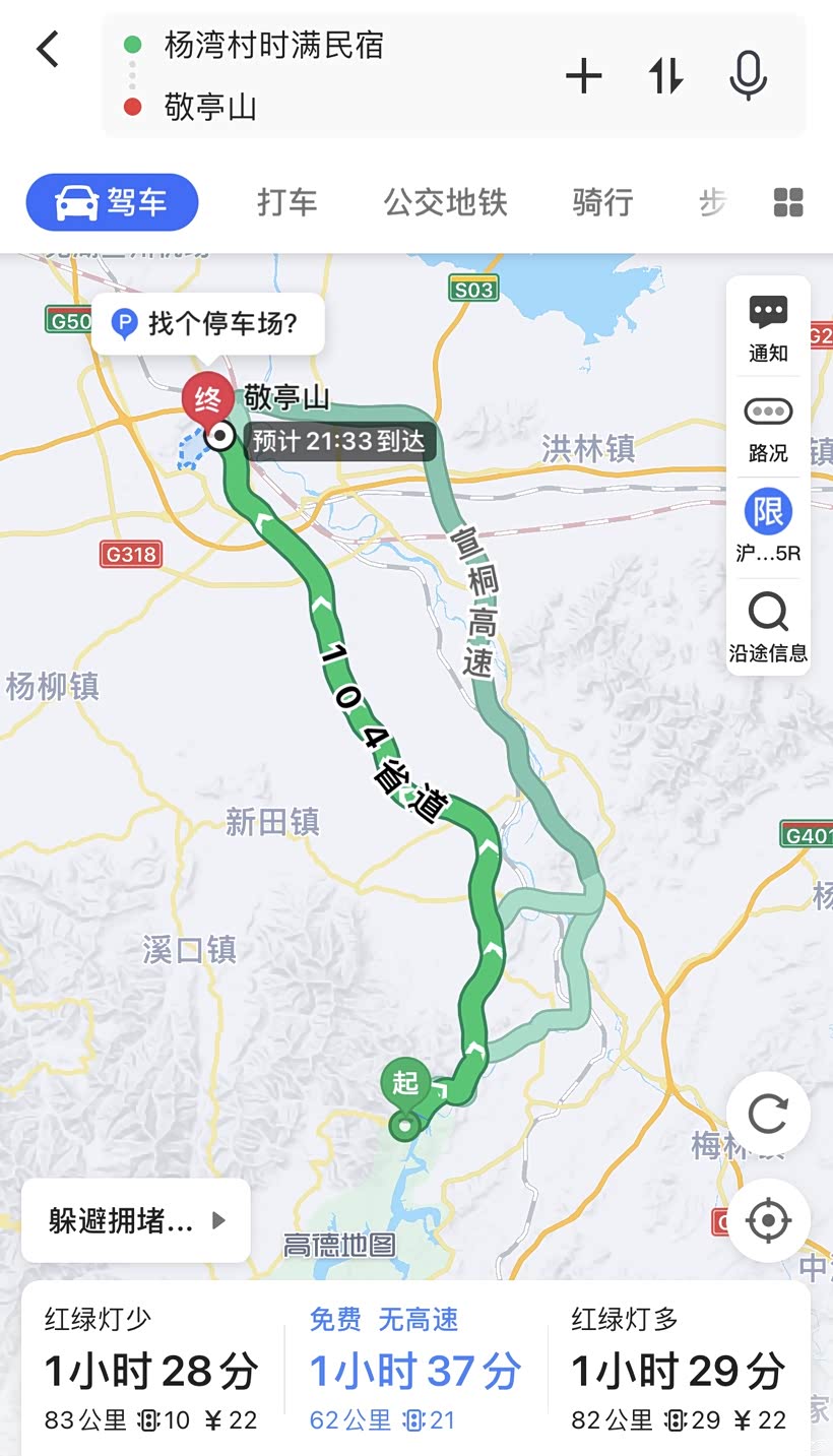 10:00 出发 宁国杨湾村时满民宿 -宣城 敬亭山 83km