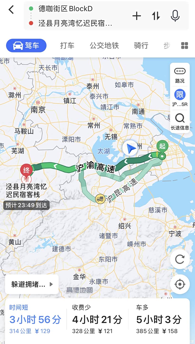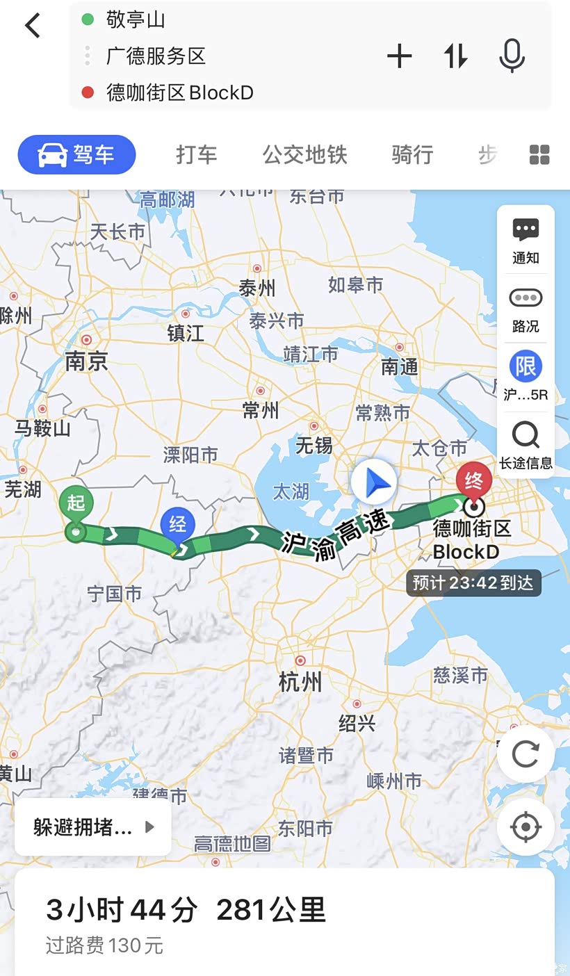 15:00 出发返程 宣城-上海 282km