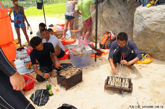 中午是烧烤和水果,我们吃过水果了,这是两个教练在给我们烤东西吃,很丰盛,最后都吃不完,鱿鱼,鲍鱼,鸡翅,骨肉相连,烤香蕉,还有很多,忘记了,只记得挺多,教练手艺不错,啤酒随意喝