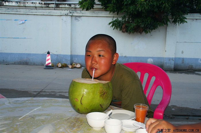 晚上还是去那个大排档,先喝一个大椰子