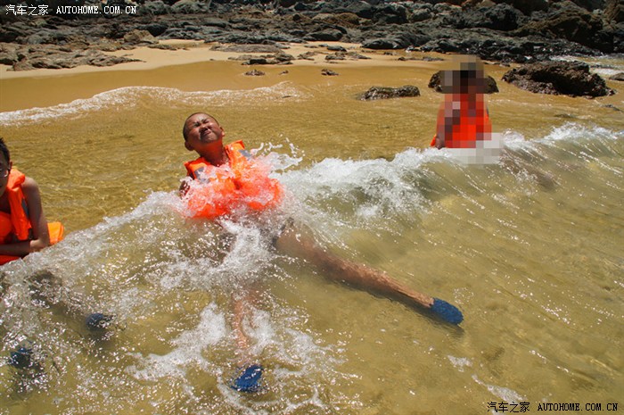 儿子玩累了,回程睡着了,看后排的小美女。第一天我有些疏忽了,只抹了一次防晒霜,教练说在三亚的太阳下,两小时要抹一次的。晚上回去赶紧给儿子用冰敷了,不过并不防碍后来的几天晒得很黑