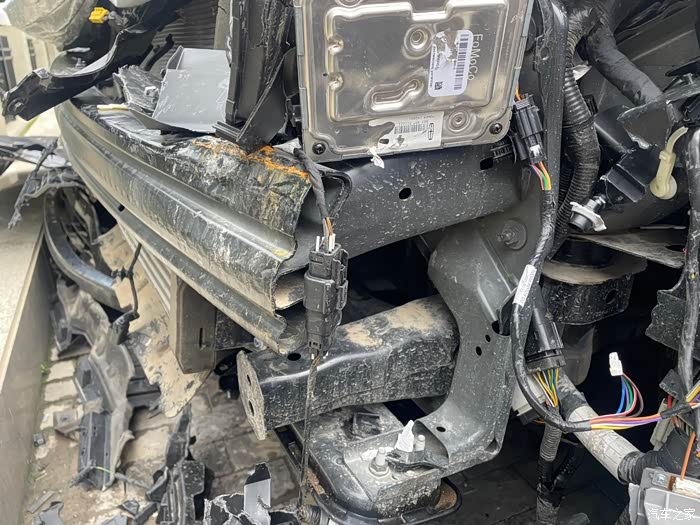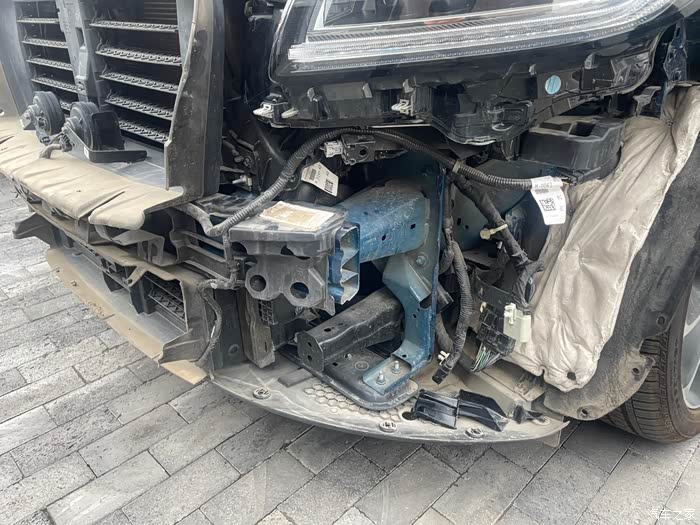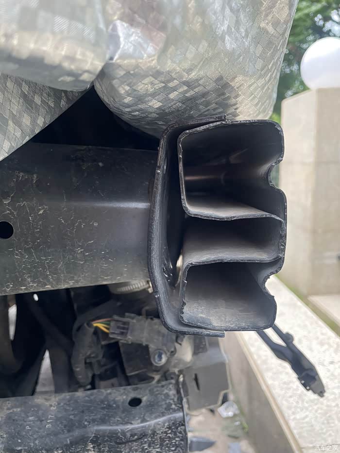 不过两台航海家的杠皮上都没有找到行人保护泡沫,这块不知道是厂家对自己的防碰撞系统十分自信(节约成本)还是在碰撞中遗失了。