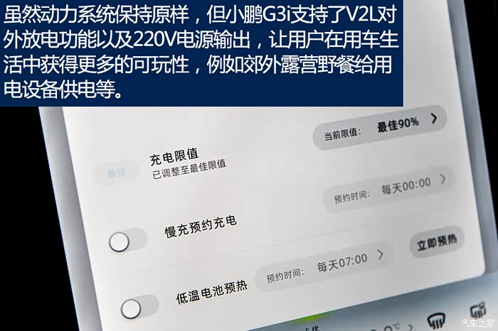 随着生活水平的不断提高,车主的用车方式已经不局限于日常上下班出行,有时还会趁着周末带着一家人开车出门散心,这样一来续航能力强的车更容易受到车主们的欢迎。小鹏G3i显然领悟到了这一点,将续航能力提升到了520公里,并缩短了快充时间,快充状态下电量达到80%只需0.58小时,这就意味着只需要喝杯咖啡的时间就能再次开车上路。其中G3i 520km续航车型的66.5kWh三元锂电池具有成熟度高,一致性好的特点。与此同时,还拥有完善的安全监控与BMS控制系统,能够有效提升电池安全性。全系标配电池加热,电池能够在-30℃的温度工作,保障小鹏G3i可在极端环境下使用。当然,460km续航车型,除了续航里程有区别外,其安全水准都是一样的。