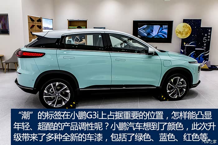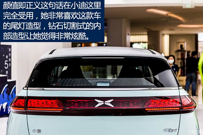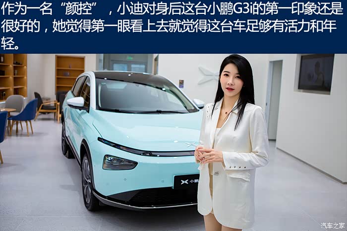跟小迪简单介绍了小鹏G3i这款车后,她就迫不及待想去看看实车,所以我们就相约周末一起来看一看。作为一名“颜控”选手,小迪对于一台车的颜值还是很在意的。而我觉得拥有X Robot Face家族式前脸、同级独创的智能灯语、全LED钻石切割尾灯、新增影青绿色车身配色、12.3英寸液晶仪表+15.6英寸中控屏和Nappa真皮座椅等,这些足够年轻潮流和具有未来科技感的设计,一定能够满足她的需求。