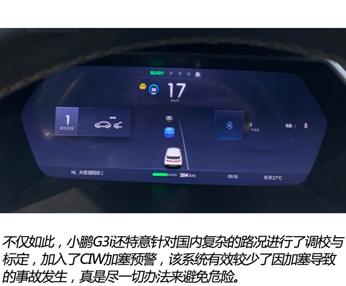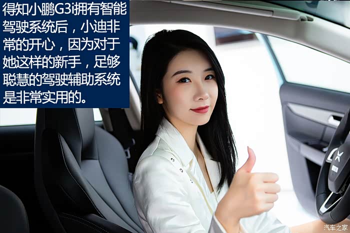 不得不说,小迪在感受完小鹏G3i的颜值后,已经深深被其吸引住了。然而过了“第一关”后,接下来就是她比较关心的问题,这台车是否容易操作和驾驶。作为一台拥有XPILOT 2.5智能驾驶辅助系统的车型,小鹏G3i包含了辅助驾驶和自动泊车,并且还有极为丰富的主动安全驾驶配置,相信一定能给小迪一个满分答案。